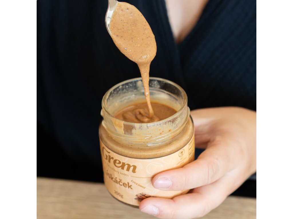 Jemný krém z čerstvě upražených lískových jader a mléčné čokolády si zamiluje opravdu každý, kdo si chce zamlsat bez výčitek. Mléčná čokoláda, kterou přidáváme do tohoto krému, je totiž slazena maltitolem. Dokonale hladký krém s pořádnou porcí lískových jader.
